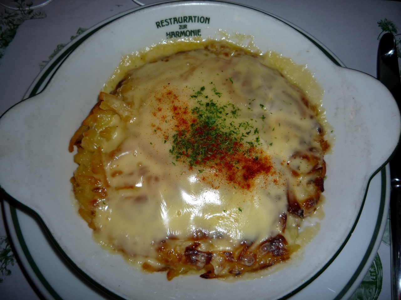 In any case, we had to leave plenty of room for dinner! Our friends took us to eat another local specialty: Rösti! The base is fried shredded potatoes, covered in cheese: